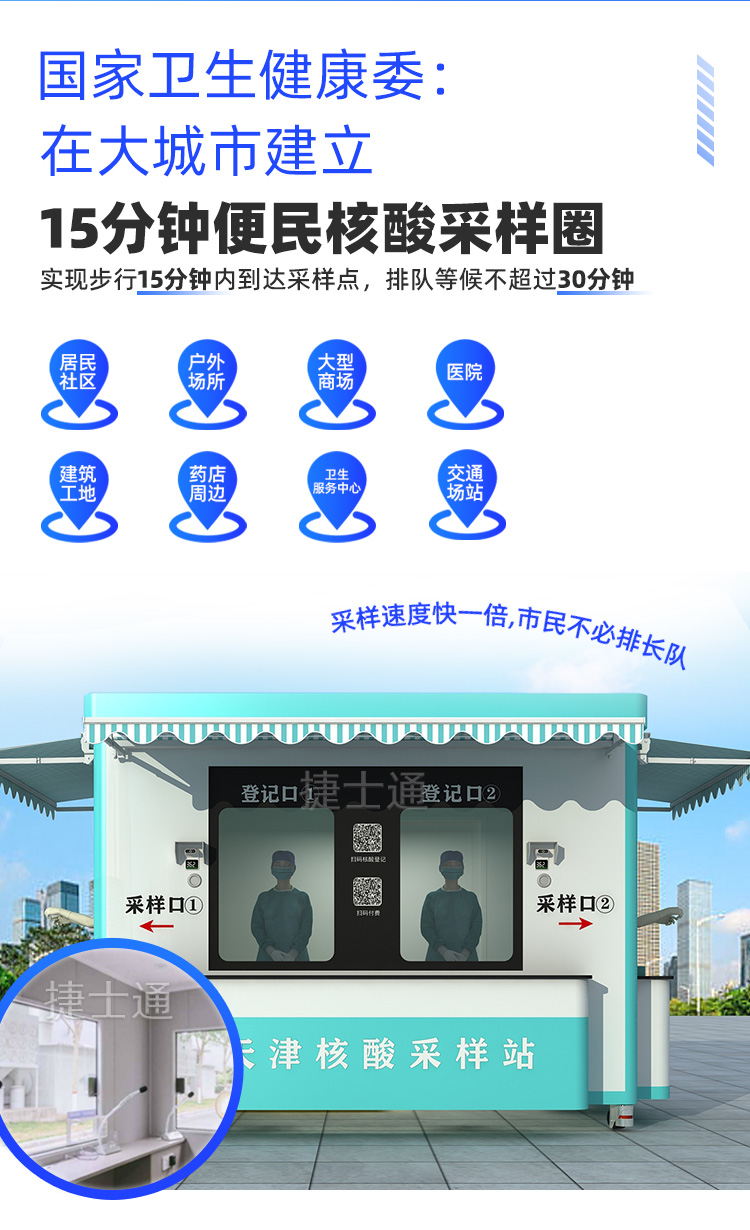 捷士通核酸采樣亭多場景使用:滿足室內(nèi)/戶外多場景核酸采樣需求,社 區(qū),地 鐵,機(jī) 場,高 鐵,客運(yùn)站,檢測機(jī)構(gòu)